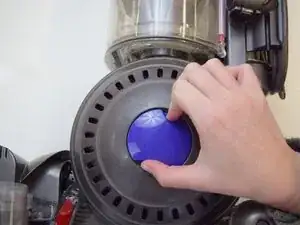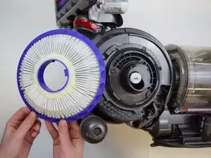После ослабления потяните фильтр вверх, и он легко отделится от основного корпуса пылесоса для замены.