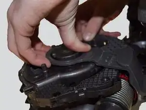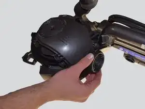 Нажмите на выемки с обеих сторон пылесоса большими пальцами. Повторите для обеих сторон.