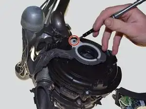 Выкрутите черный винт T-10 длиной 15 мм, расположенный в месте входа проводов в пылесос, с помощью крестовой отвертки 0.