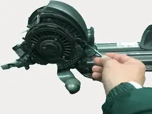 После удаления последнего винта снимите колеса с обеих сторон пылесоса.