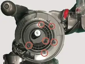 Выкрутите шесть черных винтов T-10 длиной 15 мм с левой стороны пылесоса.