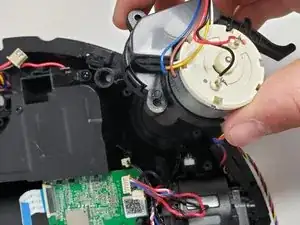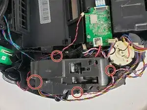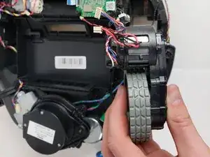 Отверткой Phillips #00 отвинтите четыре винта, фиксирующие узел колеса. Сначала слегка ослабьте каждый винт, чтобы равномерно распределить давление, затем полностью выкрутите их по очереди. Отложите винты в безопасное место для последующей сборки. Осторожно выньте узел колеса из посадочного места.