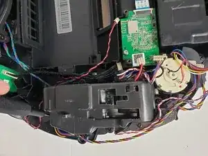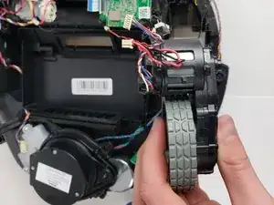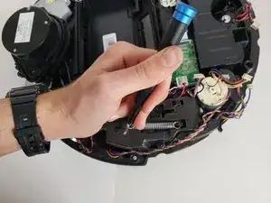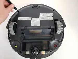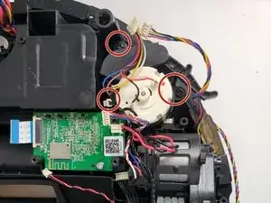 Отверткой Phillips #00 отвинтите три винта, удерживающие мотор боковой щётки, и приподнимите мотор щётки вверх.