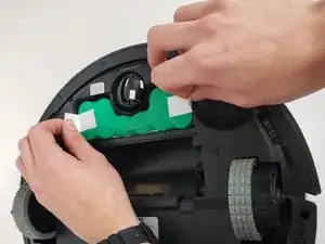 Используя две белые ленты по бокам аккумулятора, осторожно извлеките аккумулятор.