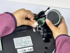 Поддерживая колесо, разъедините разъём, чтобы освободить его от устройства.