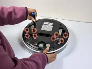 Отверткой Phillips отвинтите четыре винта рядом с каждым колесом.