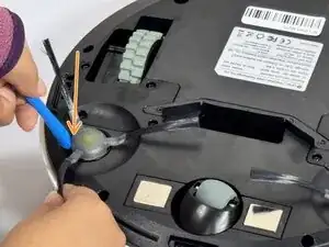 Вставьте инструмент для вскрытия iFixit (или аналогичный ломик) под круглую кромку щеточного модуля.