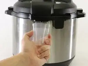 Чашка для конденсата — это пластиковая ёмкость, которая крепится к боковой части Instant Pot и собирает жидкость, образующуюся при нарастании давления. В этом руководстве показано, как снять чашку для конденсата с устройства.
