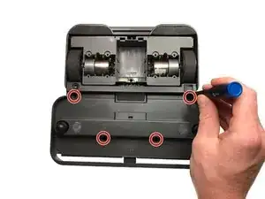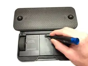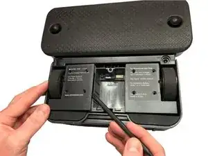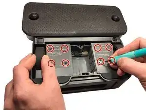 Удалите винт с плоской головкой 4 мм на крышке батарейного отсека.