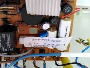 Печатная плата удерживается на месте двумя маленькими крючками. Снова используйте отвертку, чтобы ослабить ее. Обратите внимание, что вам придется покачать рычаг для освещения холодильника, чтобы освободить печатную плату.