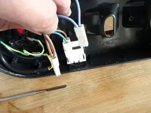 Отключите два спереда отрезных разъёма на синем и коричневом проводах от переключателя питания. Два левых остаются.
