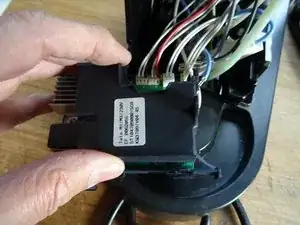 Удалите основной блок устройства с основания. Он всё ещё соединён с некоторыми проводами, но это не мешает.