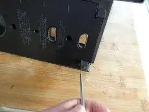 Нижняя панель просто зафиксирована. Вставьте металлическую лопатку в щели и поднимите панель. Она сидит довольно плотно, возможно, вам понадобится приложить немного силы, чтобы её снять.