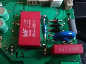 Если устройство больше не готовит кофе, а кнопки просто мигают (нерегулярно), конденсаторы могут быть неисправны. Замена не слишком сложна, детали очень дешёвые и легко доступны. Используйте конденсаторы MKP (с классом X2), 680 нФ с расстоянием 22 мм и 220 нФ с расстоянием 15 мм, минимально 275V. Для этого ремонта вам понадобится паяльник. Если вы никогда не паяли раньше, здесь вы найдёте полезные советы.