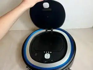 Откройте верхнюю крышку пылесоса, используя язычок.