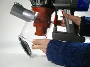 Контейнер Dyson v6 Absolute следует регулярно опустошать от мусора, чтобы устройство функционировало должным образом. Контейнер легко и гигиенично очищается.