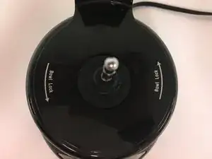 Обратите внимание, что написанные инструкции на верхней части основания напоминают пользователю поворачивать против часовой стрелки, чтобы зафиксировать емкость на месте.
