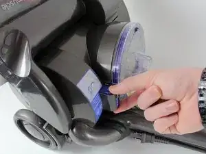 Найдите и сильно нажмите на красную кнопку, расположенную над отсеком для пыли.