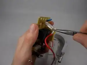 Отпаяйте белый провод, соединяющий крупный нагревательный элемент с платой, и снимите его.