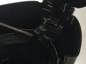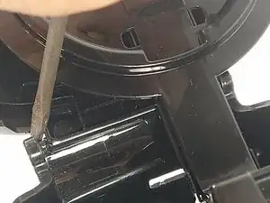 Вставьте плоскую отвертку или лопатку в один из фиксирующих элементов, удерживающих крышку.