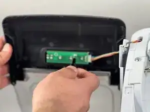 Осторожно поднимите крышку, избегая повреждения или натяжения прикреплённого кабеля.