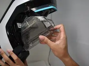 Снимите бак для чистой воды с основного корпуса, потянув вниз за ручку в верхней части бака.
