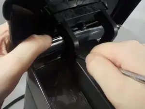 Используя металлическую лопатку или инструмент для открытия, аккуратно подденьте пластик от металлического вала.