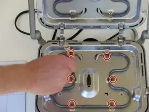 Удалите шесть винтов Phillips #2 размером 5,5 мм, которые фиксируют нижнюю нагревательную спираль к устройству.