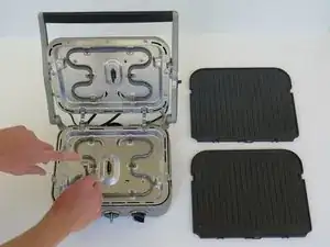 Снимите кулинарные пластины, одновременно нажав на язычки с каждой стороны пластины.