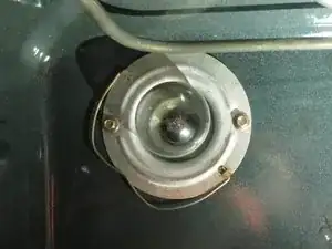 Найдите металлическую скобу, удерживающую стеклянную крышку над лампочкой.
