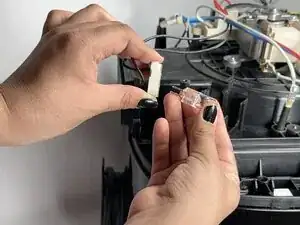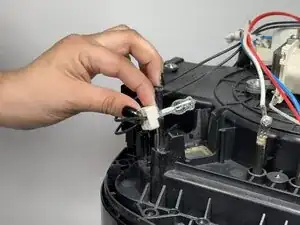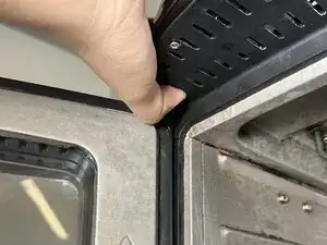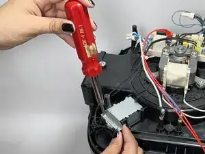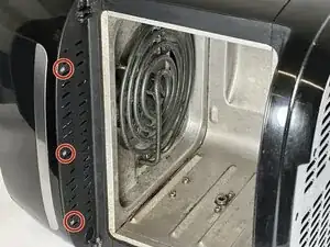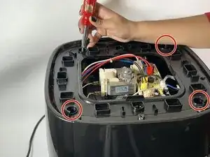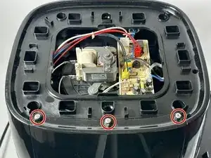 Снимите три винта 9,5 мм на верхней части аэрогриля, которые удерживают пластиковую крышку, используя отвертку Phillips #1.