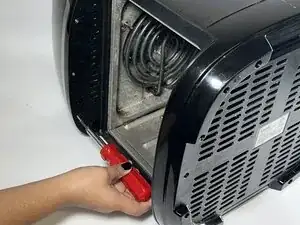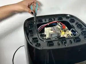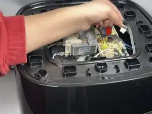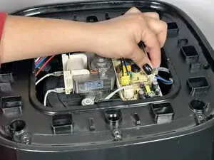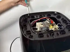 Снимите верхнюю крышку аэрогриля, чтобы получить доступ к электрическим схемам под ней.