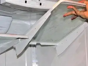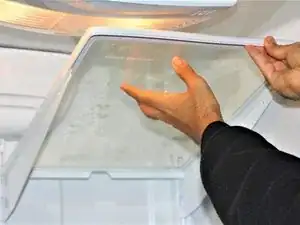 Когда защёлка освободится, аккуратно выдвиньте полку и положите её в безопасное место, так как она сделана из стекла.