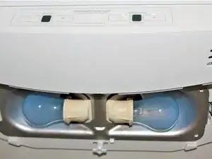 Осторожно сдвиньте пластиковую крышку, чтобы открыть доступ к перегоревшим лампам.