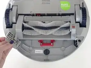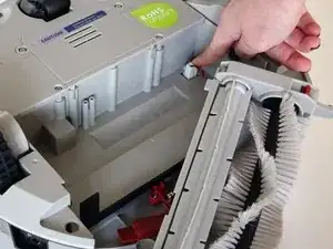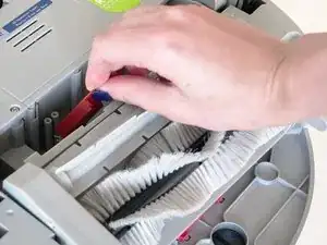 Поднимите отсек щётки вверх, пока он не освободится из красного крепления. Затем полностью снимите отсек щётки и отложите в сторону.