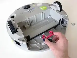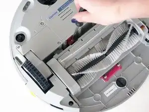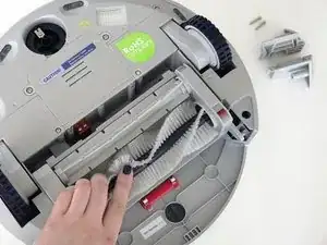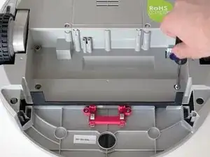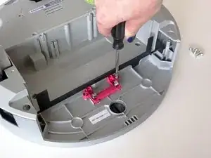 Удерживайте отсек щётки и потяните вниз, чтобы открыть два винта на красном креплении. Удалите их с помощью отвёртки.