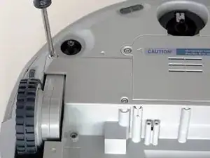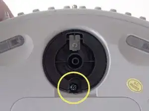 Позади колеса находятся два винта. Воспользуйтесь отвёрткой, чтобы удалить более крупный винт, установленный глубже в отсеке колеса.