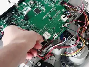 Поднимите крышку, чтобы открыть главную плату снизу. Отключите два штекерных соединения, соединяющих крышку с основной платой.