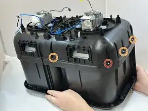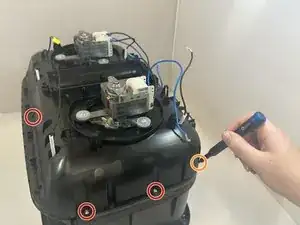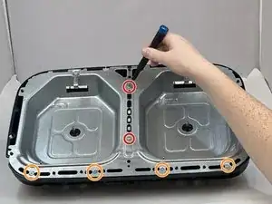 Снимите десять винтов 15 мм с нижней части фритюрницы с помощью отвертки Phillips #3.