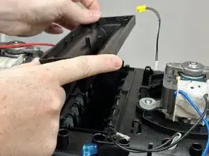 Снимите белый провод с трёх направляющих крючков.