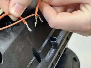 Найдите коричнево-оранжевую связку проводов спереди фритюрницы и извлеките её.