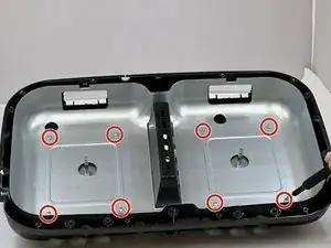 Удалите восемь винтов длиной 16,7 мм, крепящих внутренний металлический корпус.