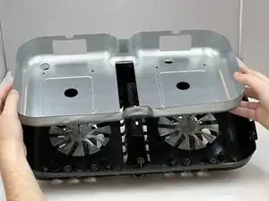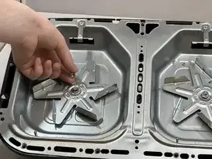 Сборка вентилятора состоит из внутреннего и внешнего набора лопастей. В этом руководстве показано, как снять оба набора лопастей, поскольку может быть трудно определить, какая лопасть вызывает проблему. Этот процесс включает разборку большей части фритюрницы, действуйте осторожно перед началом работ.