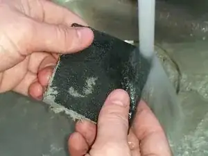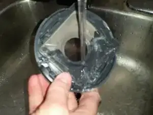 Промойте кожух фильтра под водой. Частицы должны легко смываться, так как они мелкие. Если нет, слегка потрите.