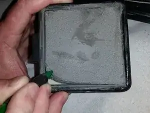 Используйте монтажный инструмент, например лопатку, чтобы отделить поролоновый фильтр от более крупного HEPA-фильтра.