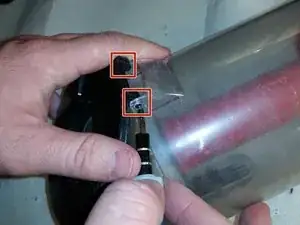 На дне пылесборника найдите дверцу на петлях. Используйте отвертку, чтобы выдавить два шарнира и снять дверцу.