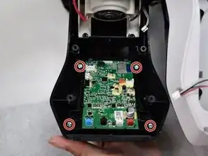 Снимите четыре винта Phillips #2 длиной 16 мм на задней части пылесоса и под резервуаром для чистой воды.
