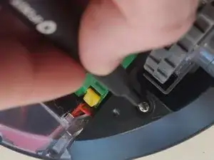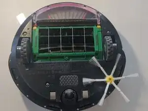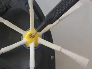 Снимите главную щётку, открутив один 5 мм винт на жёлтой боковой щётке крестовой отвёрткой Phillips #1.