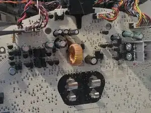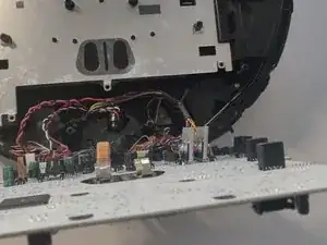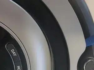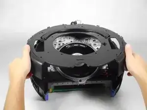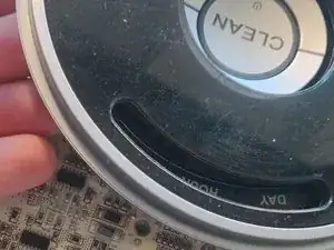 Снимите внешнее серебристое кольцо, крышку из чёрного пластика и чёрную плёнку с центральной платы управления в указанном порядке.