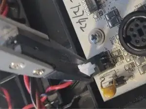 Отверткой Phillips #1 отвинтите два 5 мм винта, которые соединяют красный и белый провода с устройством.